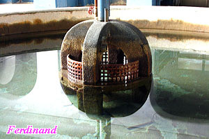 台北機廠之員工澡堂,始建於1935年(昭和10年),專為機廠員工所使用.其雖為員工公共澡堂,但受當時建築潮流影響,外觀與造型皆充滿幾何形式之美.其結構為鋼筋混凝土與鋼樑並用, 屋頂為圓拱之構造,澡堂內的半圓筒空間內部無樑柱,左右牆設置大窗,引進光線使室內明亮.而兩側則依依廊柱寬度,隔成一個個小空間,可供員工置物與初步沖洗.而澡堂的熱水則利用工廠內鍋爐之蒸汽,以管線導入浴池之中加熱而來.充分地利用工廠之資源.